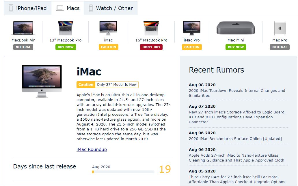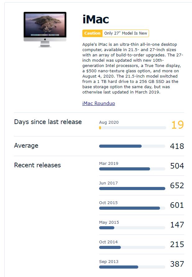 애플의 맥(아이맥/맥북/맥미니) 제품들은 제품 출시일이 일정하지 않다.