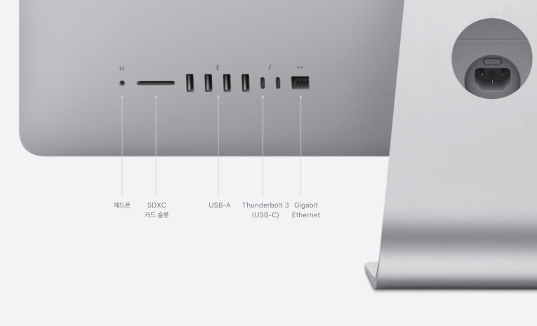 아이맥의 모든 포트는 뒷면에 위치해 깔끔하게 구성되어 있다.