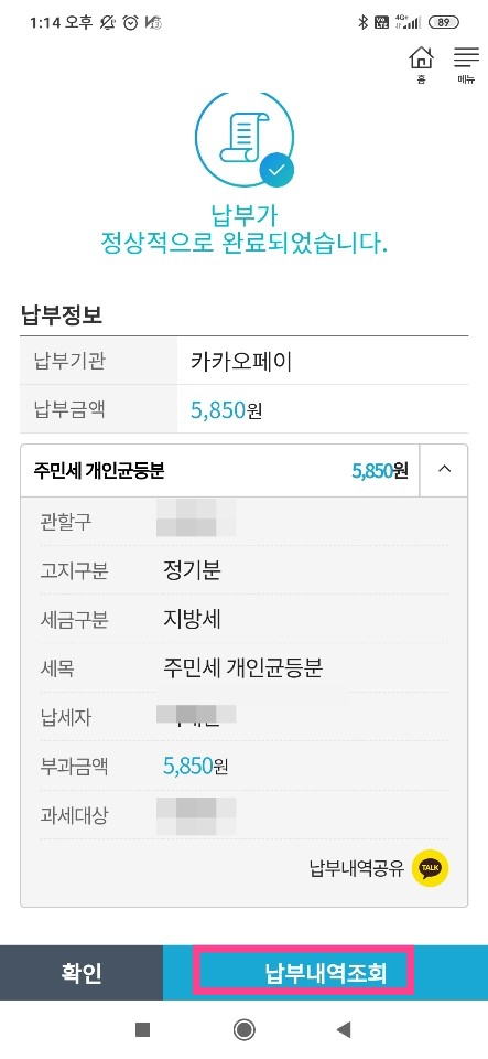 혹시 모르니 납부내역 조회를 통해 한번 더 확인을 해보자.