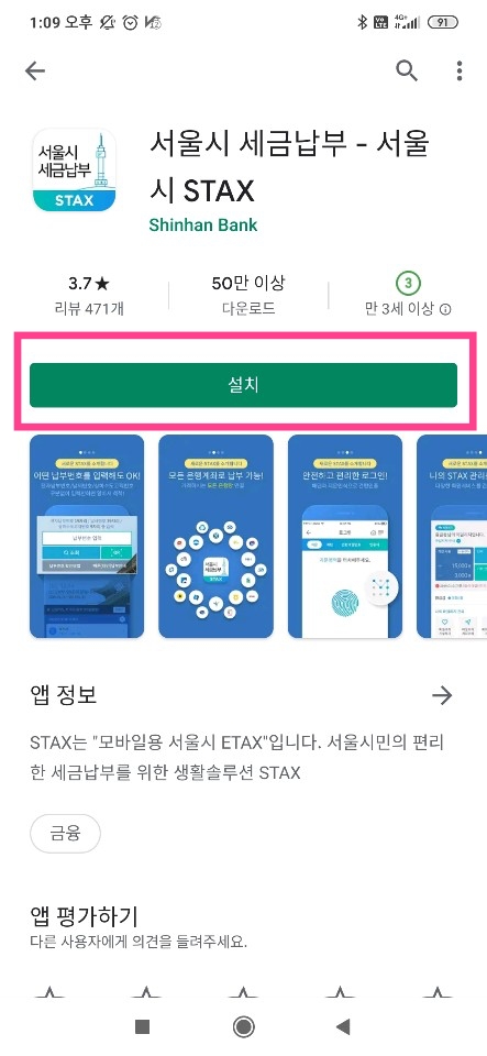 STAX(서울시세금납부앱)을 이용한 주민세 납부과정