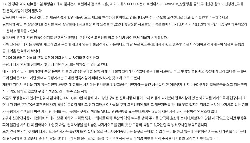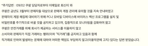 * 쿠팡사이트만의 문제가 아니라 모든 오픈마켓에 동일한 사기가 많이 발생하고 있다.