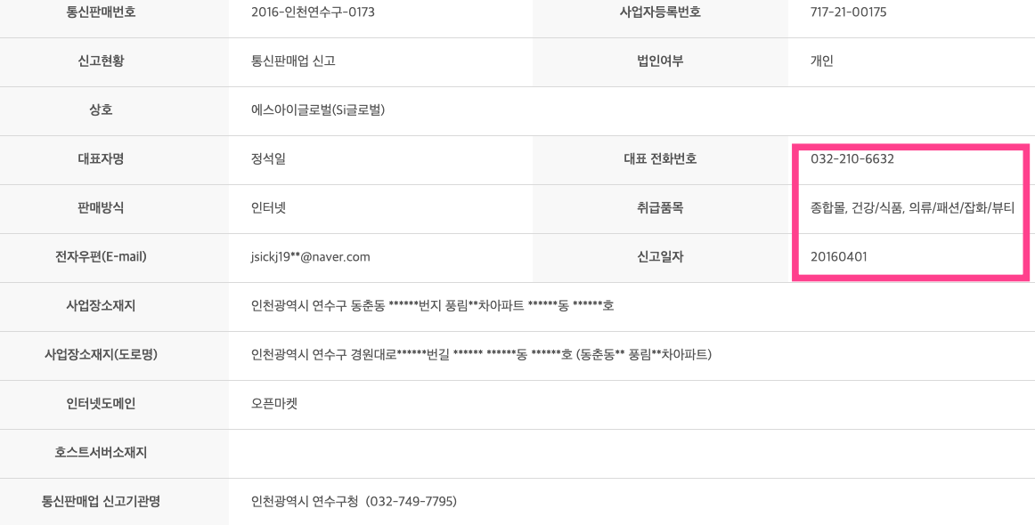 사업자 번호로 조회를 해보면 종합몰/건강기능식품/의류등 '가전제품'과는 전혀 다른 제품을 판매하는 곳임을 알 수 있다.