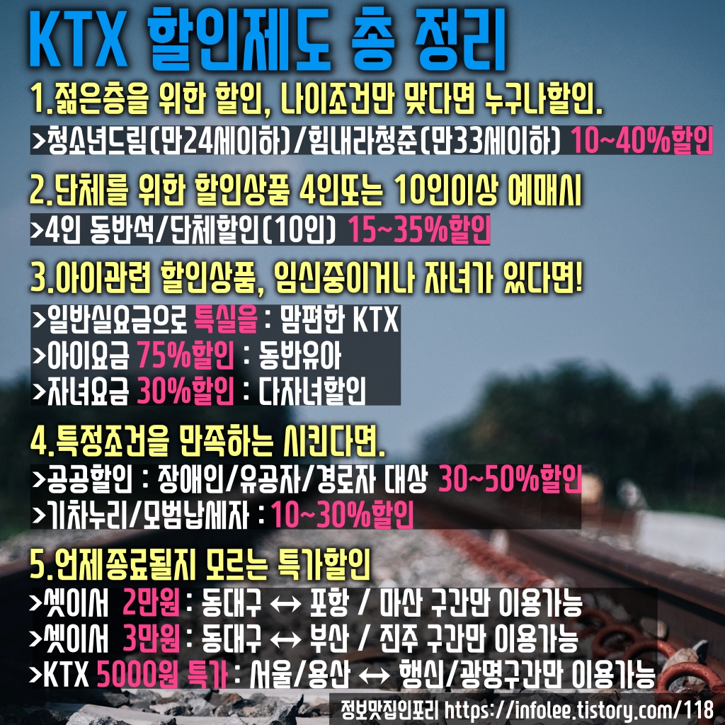 생각보다 KTX할인 제도를 모르는 사람이 많다.