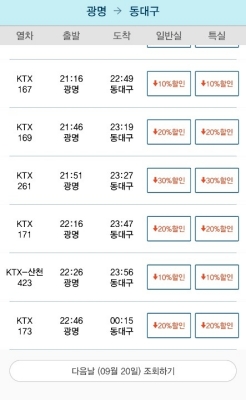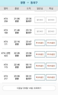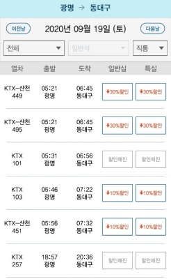 바로 열차공석이 없는 '황금시간대'에는 대다수 할인이 적용이 되지 않아 너무 이른 시간 또는 너무 늦은 시간에 할인이 적용된다.