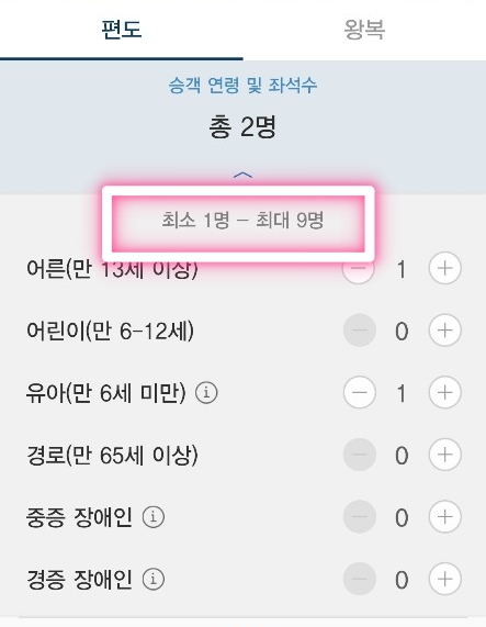 | 할인적용 | 6세 미만 유아선택 후 예매 시 자동할인 PC 웹 사이트에서 예매시 결제 화면에 '운임추가할인선택'부분에 동반유아 부분이 선택되었는지 확인 |
