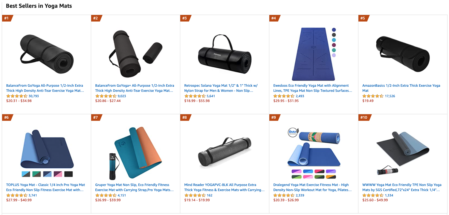 그래서 '미국' 아마존의 판매량을 기준으로 요가매트 구매 정보를 모아 봤다.