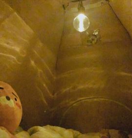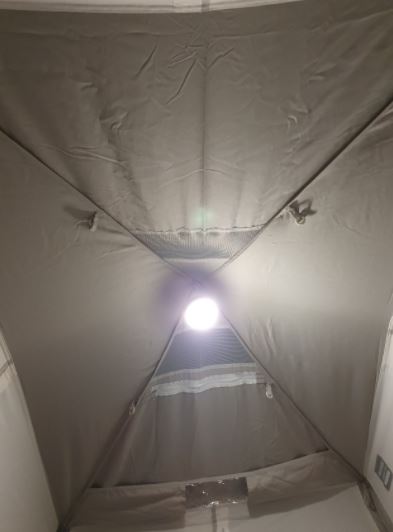 보온을 위해 텐트문을 닫아야하는데 그럼 빛이 들어오질 못해 실내가 어두워진다.