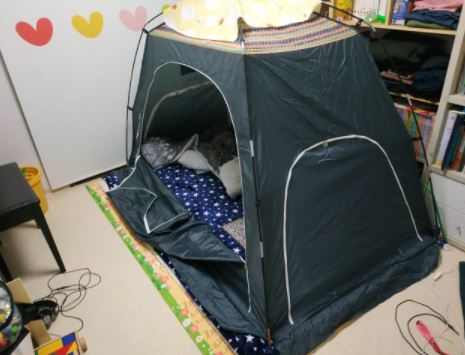 텐트 자체만으로도 공기를 가두고 외풍을 막아주어 어느정도 큰 효과를 볼 수 있다.