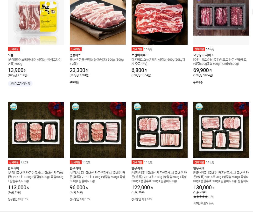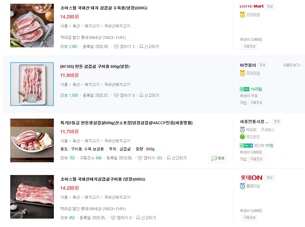 일반 오픈 마켓이라면 고기외에 다른 생필품을 사서 배송비를 절약하겠지만 위의 두곳은 고기가 전문이라 선택지가 없다.