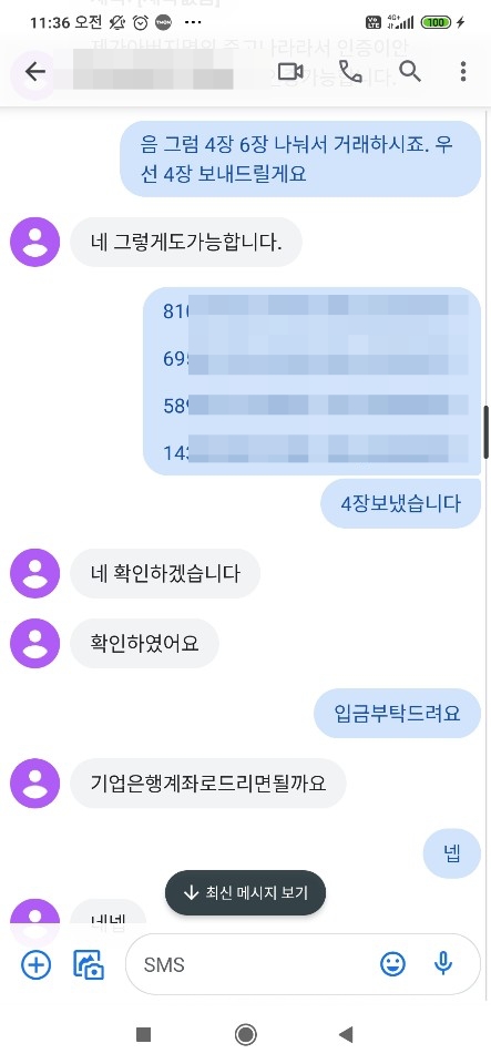 사기피해방지를 위해 2번 나눠서 금액을 받기로 했고 첫번째 거래는 문제 없이 끝났다.
