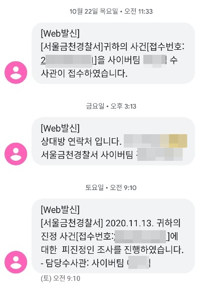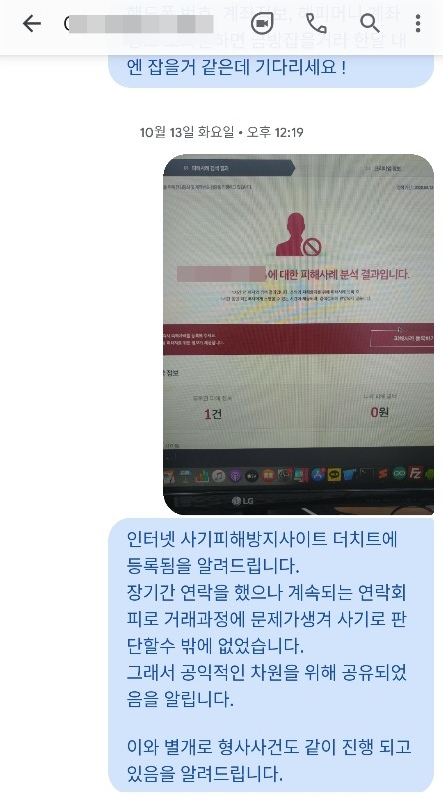 그런데 문자 내용처럼 진행과정에 대한 내용들을 보냈지만 잡힐때까지 사기꾼은 연락이 없었다.