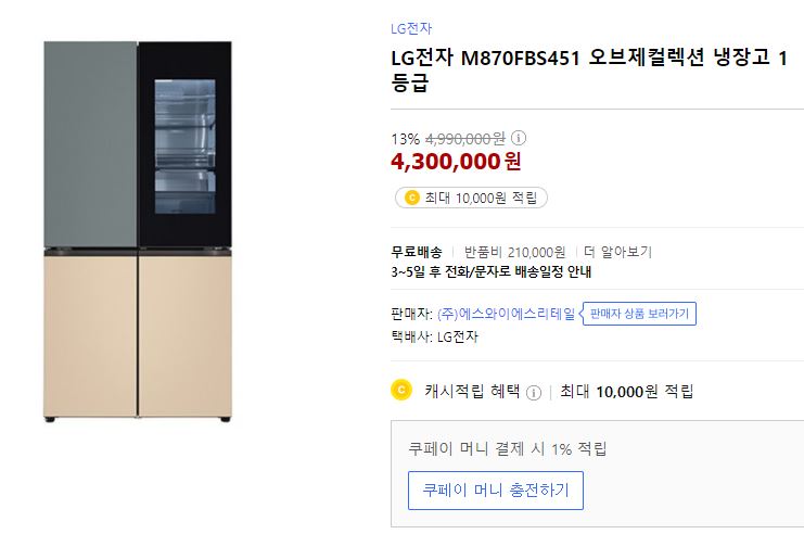 관련제품 - LG전자 오브제컬렉션 M870FBS451 (440만원대)