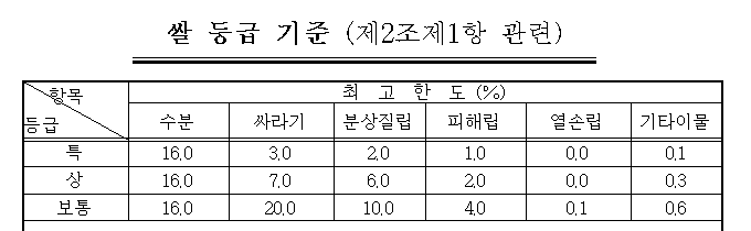 쌀 포장지에 써있는 쌀의 등급은 위의 기준에 따라 결정이 된다.