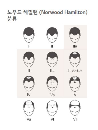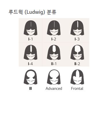 엘지 프라엘 메디헤어는 사용대상을 노우드해밀턴/루드윅/BASP유형과 피츠패트릭유형에 따라 사용 대상을 정의하고 있다.