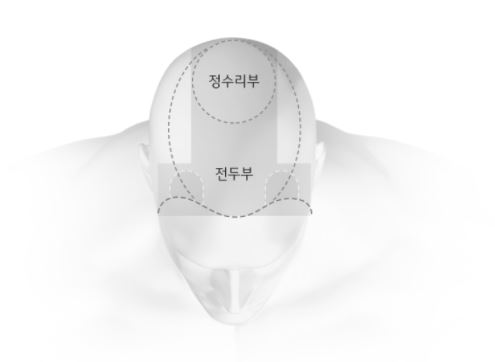 탈모가 많이 발생하는 앞머리/정수리/윗머리 흔히 말하는 T존을 집중적으로 관리를 한다.