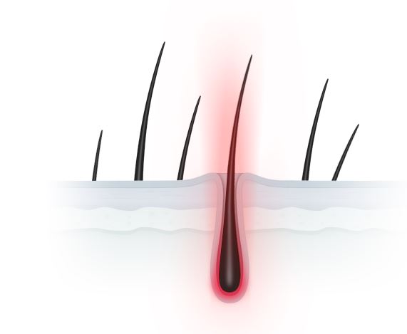 레이저를 통해 피부의 진피/피하조직까지 침투함으로 모근을 포함한 각종 세포조직을 활성화하고 신진대사를 촉진시켜 모발의 성장을 촉진시킨다.