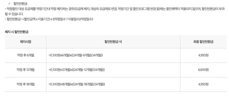 * 선택약정할인도 정해진 기간을 채워야하고, 못채우면 위약금 발생