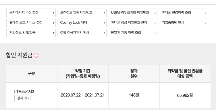 만약 사용자가 해당 기간을 채우지 못하고 해지를 하면 위약금이 발생한다.