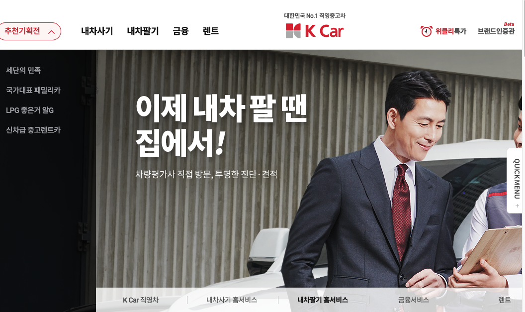 | K car | 직접 모든 중고차를 매입, 관리 적은 매물 상대적으로 조금 비싼 가격 |