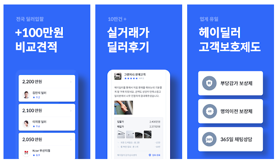 헤이딜러는 초기에 중고차 매입관련 앱으로 큰 인기를 끌고 있는 만큼 간편하게 견적을 내볼 수 있다는 장점이 있다.