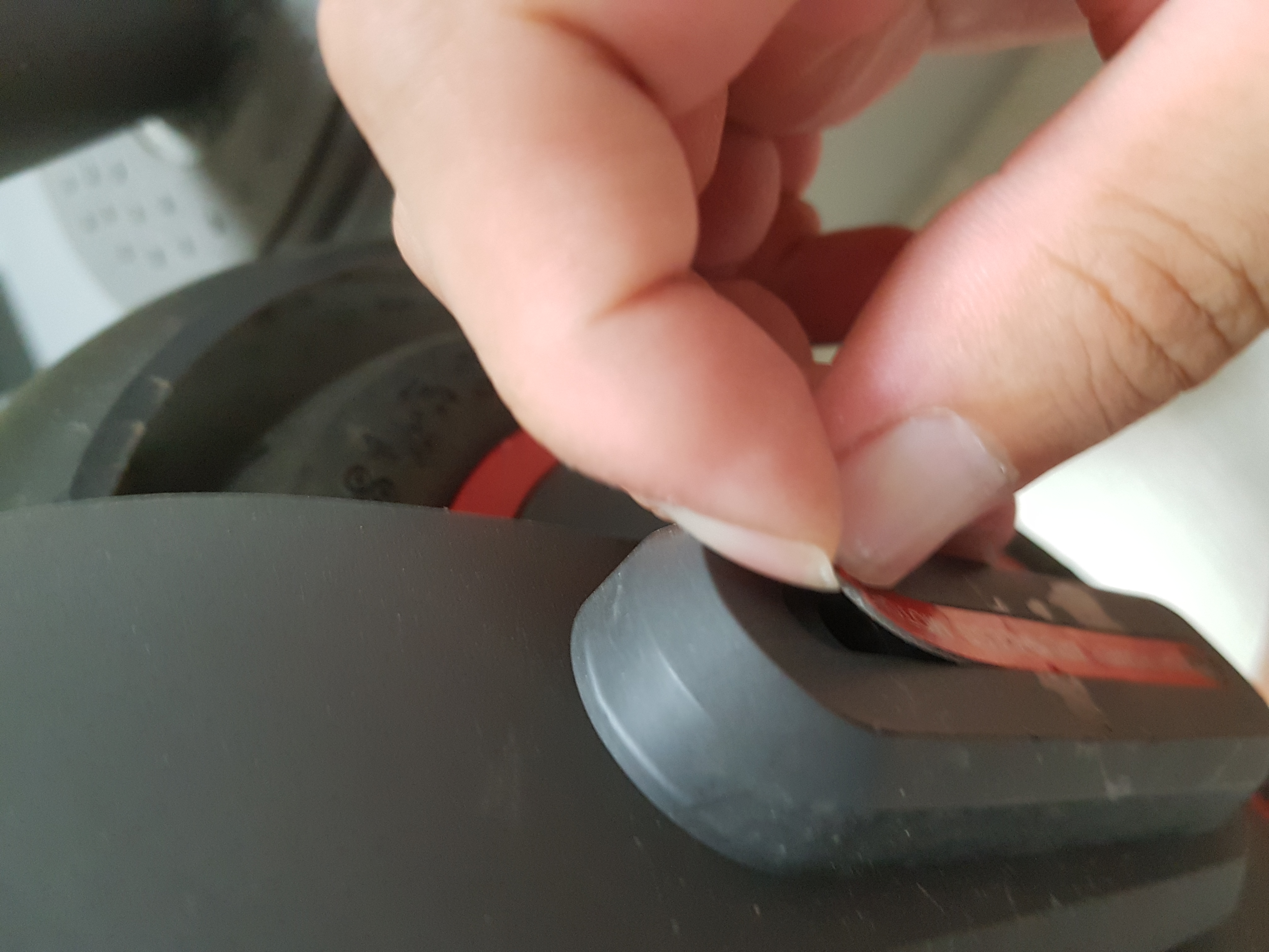 이때 주의점은 겉에 보이는 빨간스티커를 착각하고 떼면 안되고 더 깊숙이 찔러야한다.