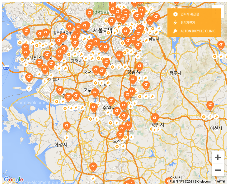 홈페이지 기준 알톤과 삼천리 대리점 현황으로 전기자전거 서비스를 받을 수 있는 곳은 제한되어 있어 가능하면 주거지에 가까운 업체를 선택하는게 좋다.
