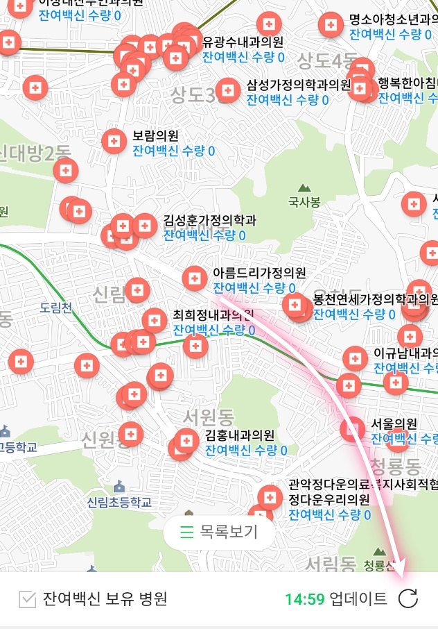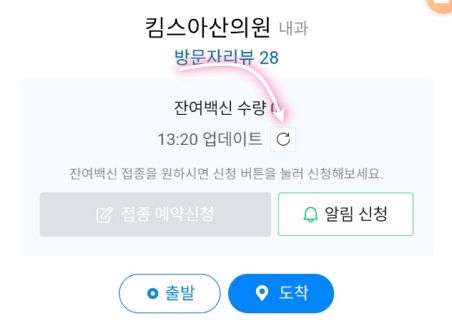 즉. 본인이 빠르게 접종을 맞고 싶은데 자리가 없으면 주기적으로 새로고침을 누르면 수량이 업데이트 된다.