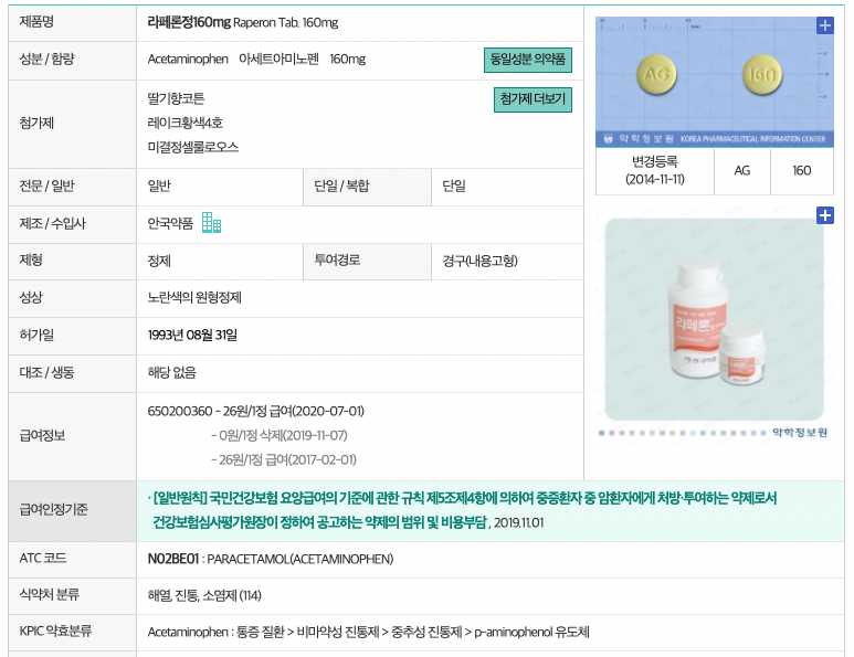 5. 라페론정160밀리그람(아세트아미노펜) / 안국약품(주)