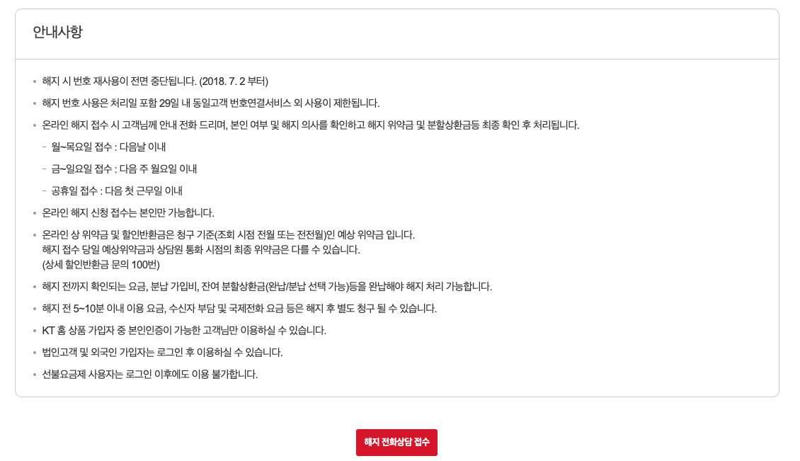 그래서 방문 전 미리 전화를 통해 집전화 해지가 가능한지 문의 후 방문을 하는게 좋다.