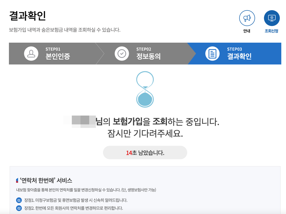 내보험 다찾아줌 사이트 이용 - 숨은 보험금 조회하기