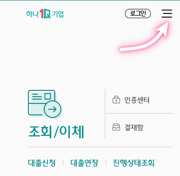 하나원큐 기업 앱 실행 -> 우측 상단 메뉴버튼 -> 대출신청 -> 제일아래 [하나원큐 보증재단 대출]을 선택 하면 된다.