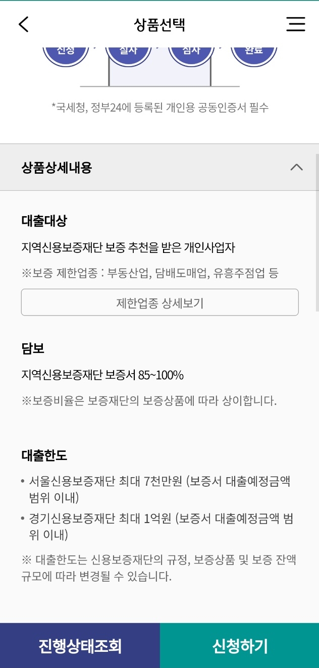 | 제외업종 | - 유흥업 및 도박·향락·투기 등 제한업종은 신청 불가 |
