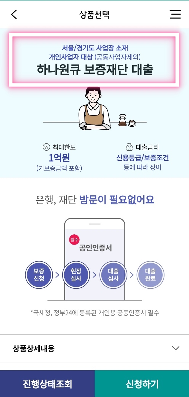 다시한번 말하지만, 하나원큐보증재단대출이 서울시 4무 안심대출과 동일한 상품이다.