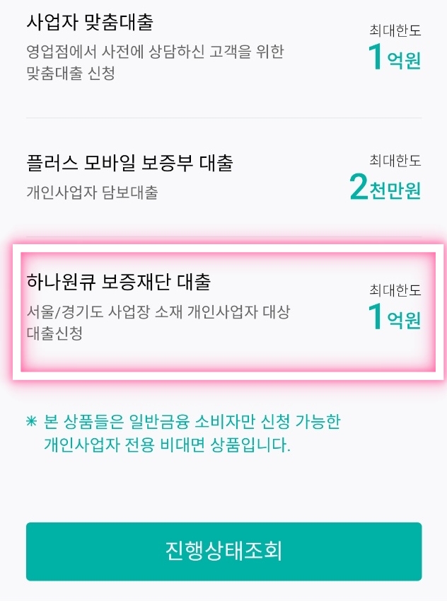 참고로 대출 화면에 보면 제일 상단 '소상공인 2차 금융지원대출'이라고 표기되어 있는데 이 상품은 아니다.
