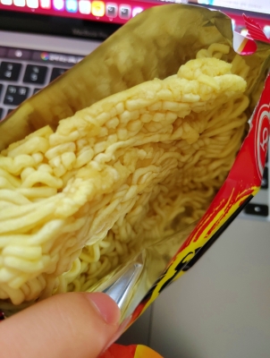 인터넷을 통해 주문한 오뚜기 라면(열라면)이었는데, 조리를 하기 위해 포장지를 뜯었더니 면이 한쪽으로 쏠려서 흔히 말하는 떡진것 처럼 면들이 뭉쳐졌다.