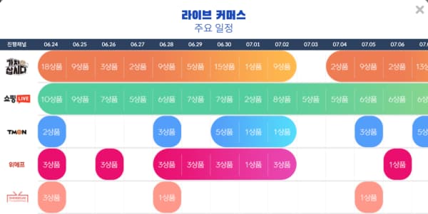 | 06/24~07/11 | 랜선 전국 투어! 지역특화 상품 집콕 쇼핑틑까 (수도권/충청권) |