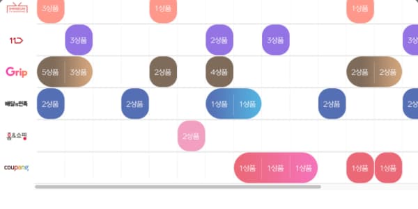 | 11번가 | 06/24~07/11 | 동행세일 쿨한 여름을 위한 특별템 |