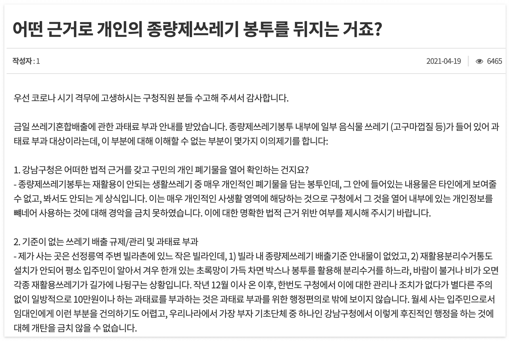 그 이유는 제목에 써있듯이 일반 쓰레기와 음식물 쓰레기 구분을 제대로 하지 못해 과태료가 발생하는 경우가 발생할 수 있어 그렇다.