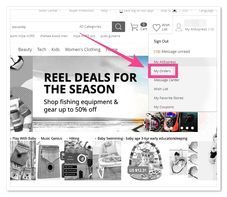 1. 알리익스프레스 접속 후 로그인 → My Orders 선택