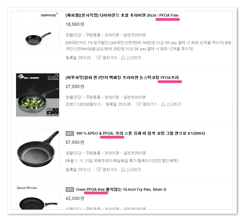 그래서 가능한 PFOA가 포함이 안된 제품(PFOA Free)을 구매하는게 좋고 "세라믹코팅"이 적용된 제품들을 구매를 해도 된다.