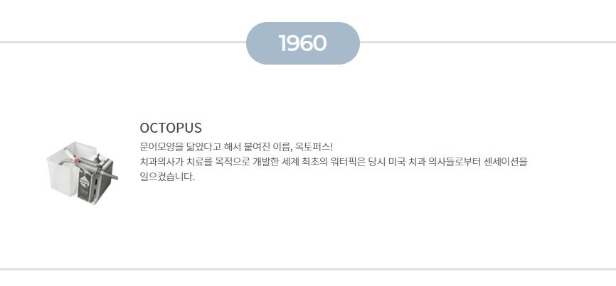 워터픽은 치아교정 중인 사람이거나 치열이 고르지 못해 칫솔질로 깨끗하게 닦이지 못하는 사람들을 위해 개발이 됐다.