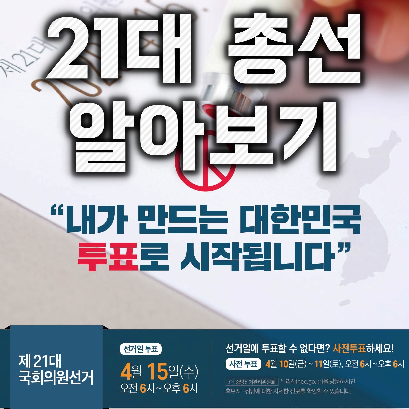 오늘부터 사전투표가 시작이 되어 투표소를 찾아보던차에 궁금한 사람들이 있을것 같아 블로그에 총선에 관해 정리를 해봤다.