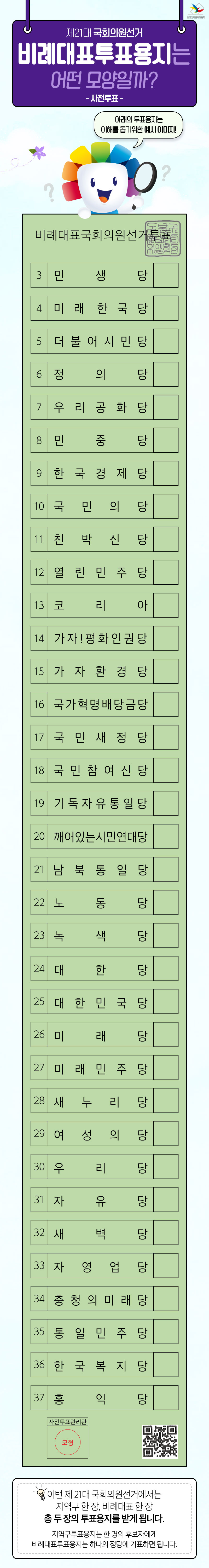 끝으로 투표용지가 너무 길어서 수개표를 진행하게 됐다는 비례 대표 투표용지 예시 이미지다.