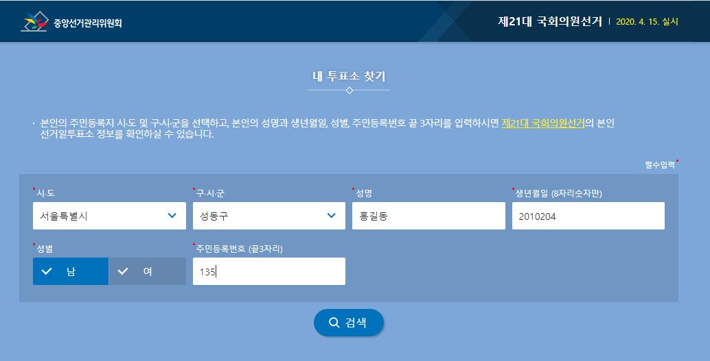 1. 중앙선거 관리위원회 투표소 접속 : 투표 검색
