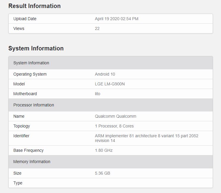 벤치마크 사이트 등록 LG 벨벳의 벤치마크 점수 .