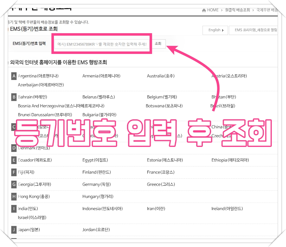 EMS 배송을 조회 하는 방법으로 아래의 절차에 따라하면 간단하게 조회를 할 수 있다.
