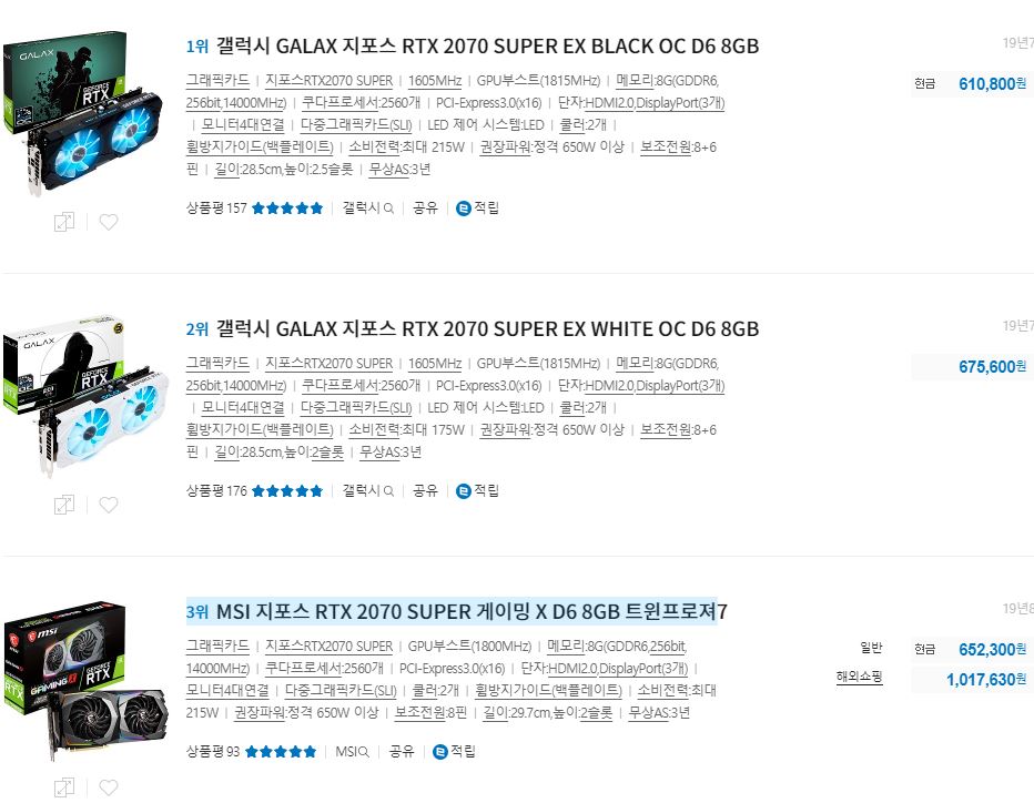 한번 동일한 2070 SUPER의 다른 제품 가격을 살펴보자.