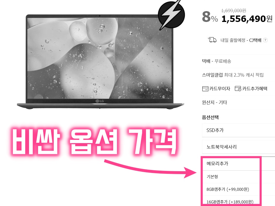 그래서 직접 노트북에 맞는 부품들을 구매해서 직접 업그레이드 하거나, 공임을 주더라도 서비스센터에서 업그레이드 하는게 훨씬 노트북을 저렴하게 사는 방법이다.