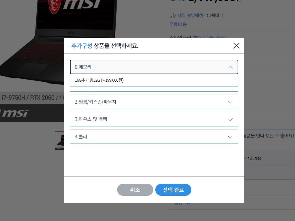 | 램 8GB 추가 | 99,000원 (175%↑) |