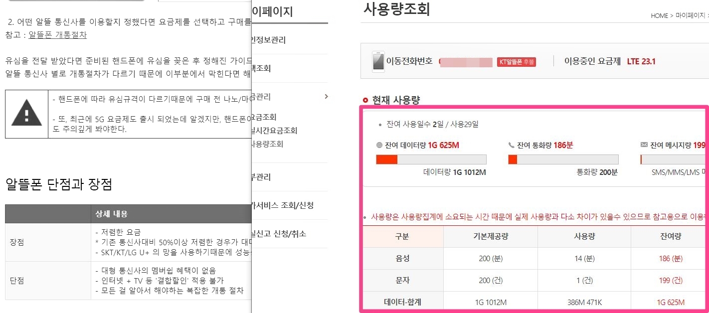 KT는 결합할인을 이용하고 있는데 위의 조건으로 이용을 하려면 2만원이상의 요금이 발생하는 상황이었는데 알뜰폰을 사용하면서 통신비를 절반 이상으로 줄일 수 있었다.